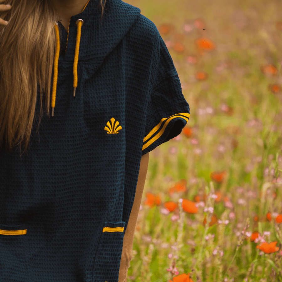 - Coton nid d’abeille 280 g/m² : plus léger qu’un poncho classique tout en restant absorbant.